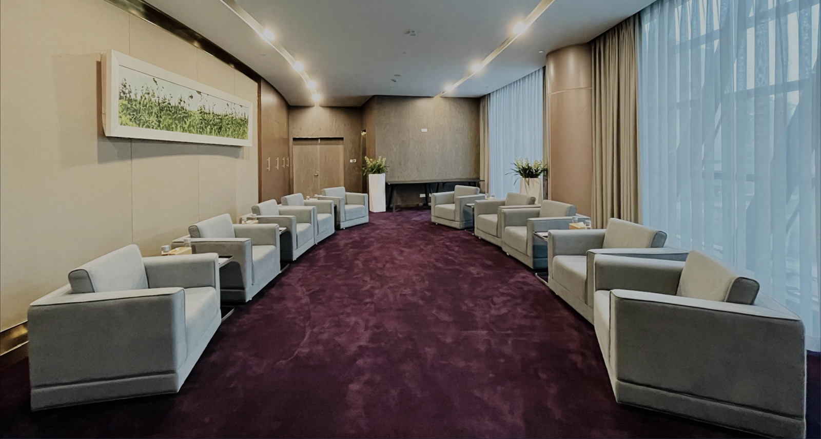 83平方米寬敞會議空間,配置13個舒適沙發(fā)位或16個會議坐席,專屬通道及電梯直達,可配置專屬禮賓服務人員,獨立衛(wèi)生間。
